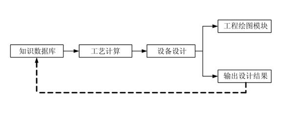工藝計(jì)算后的設(shè)計(jì)方案作為設(shè)備設(shè)計(jì)的原始條件。首先從工藝模型數(shù)據(jù)庫(kù)中檢索確認(rèn)和完成總體結(jié)構(gòu),再結(jié)合設(shè)備設(shè)計(jì)數(shù)據(jù)庫(kù)進(jìn)行具體的零部件設(shè)計(jì),主要的設(shè)計(jì)內(nèi)容包括: 筒體和封頭設(shè)計(jì)、攪拌裝置設(shè)計(jì)、傳動(dòng)裝置設(shè)計(jì)、軸封裝置設(shè)計(jì)等。設(shè)計(jì)得到的結(jié)果保存到設(shè)計(jì)報(bào)表中,后續(xù) CAD 繪圖模塊從中讀取有關(guān)數(shù)據(jù),繪制或自動(dòng)生成設(shè)備工程圖。具體流程如下圖: